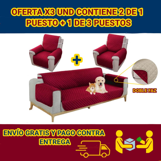 PROTECTOR PARA SOFA DOBLE FAZ REVERSIBLE 3 PUESTOS 160x180CM⭐️⭐️⭐️⭐️⭐️5/5